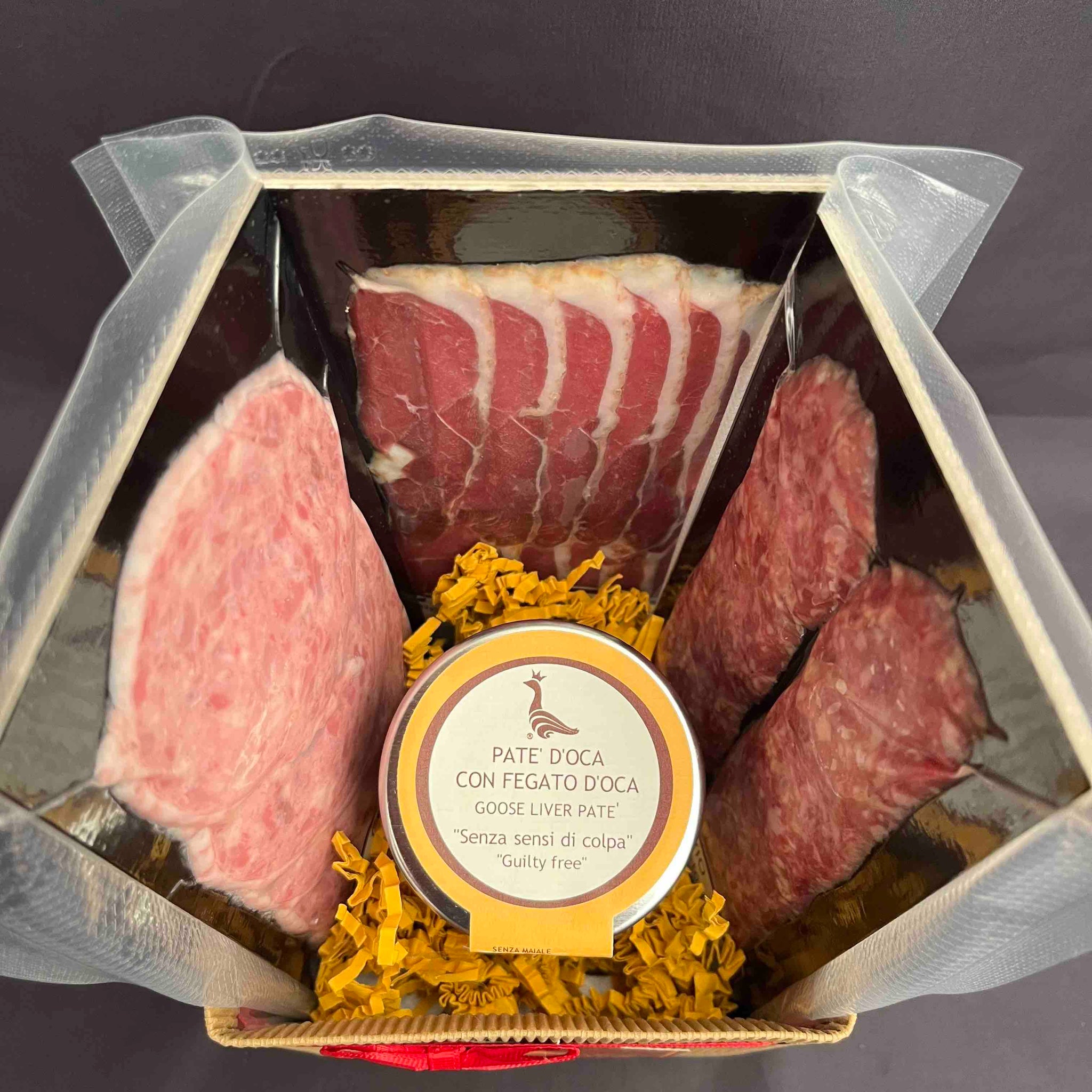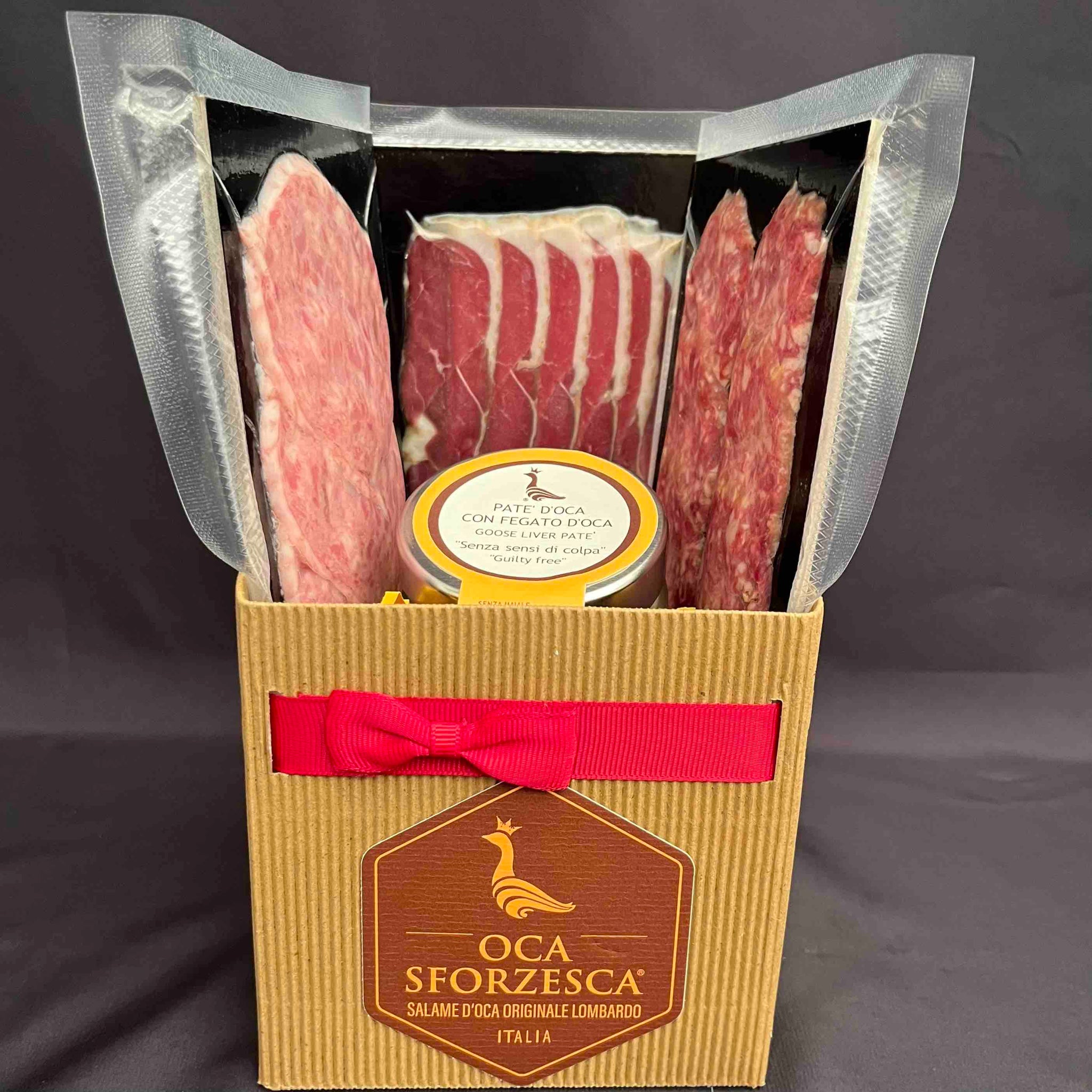 Questo cadeau è composto solo da Salumi d'Oca Originali Lombardi con solo carne d'oca e senza maiale come da tradizione millenaria.